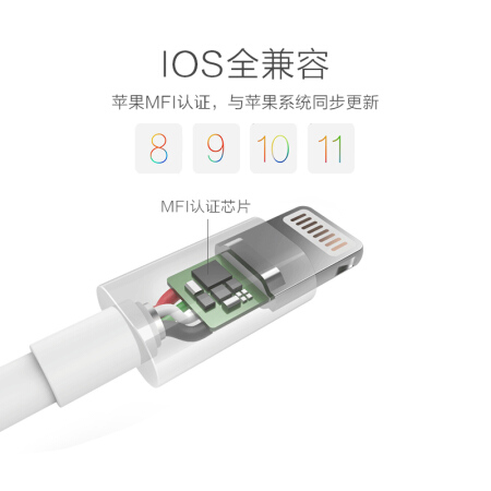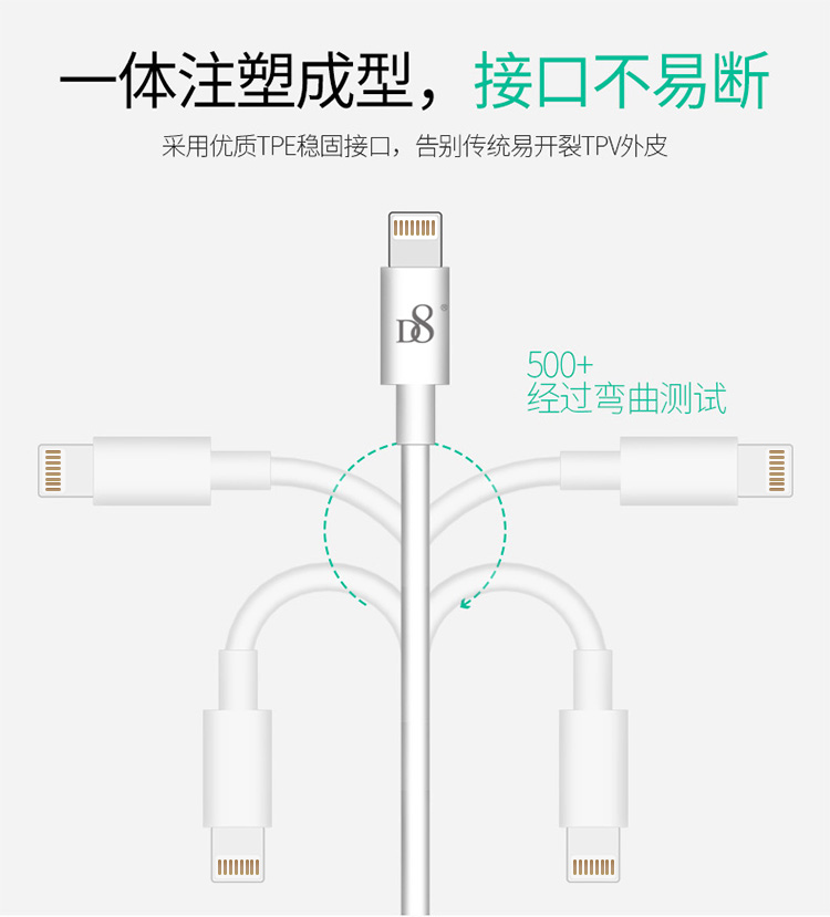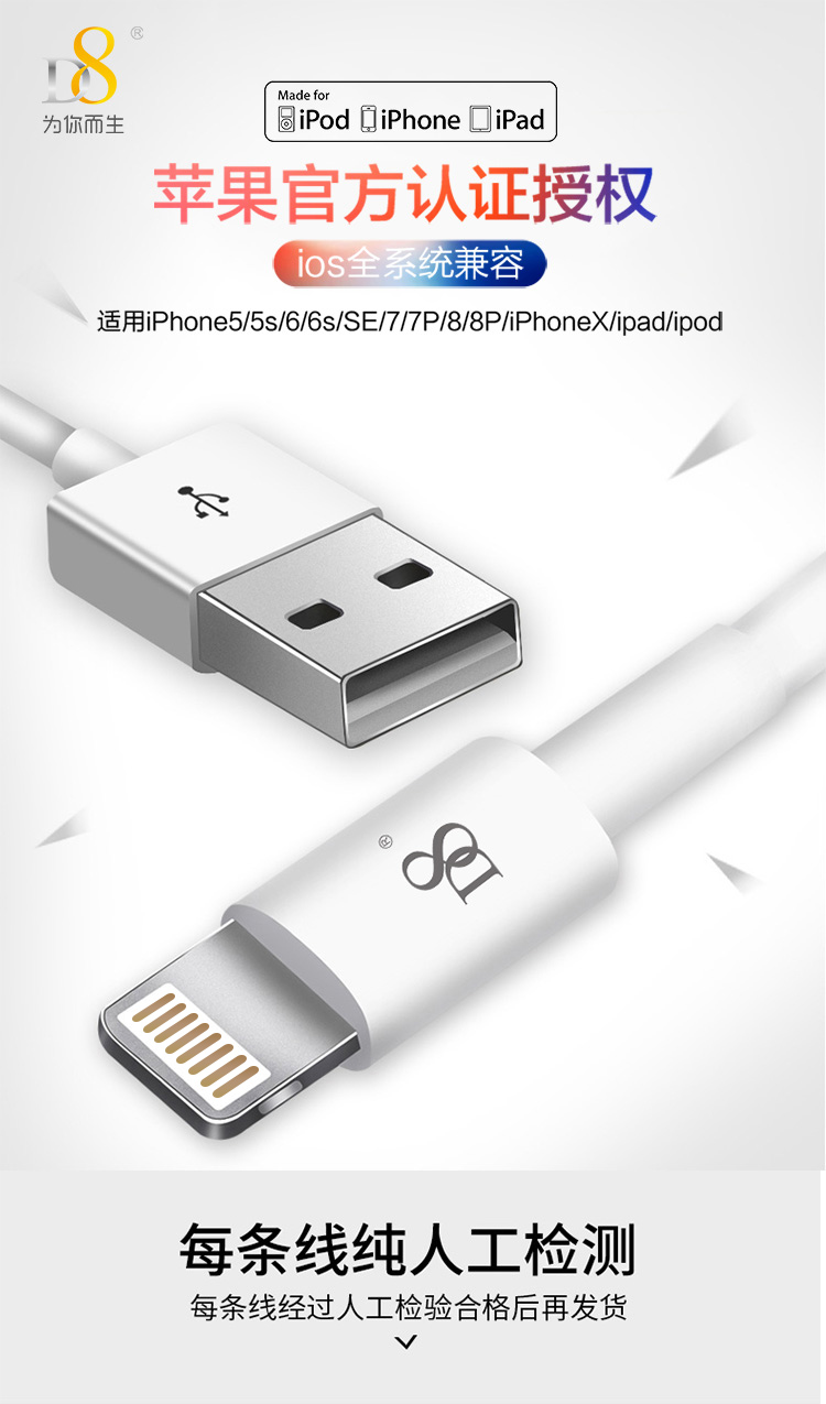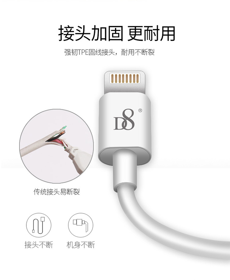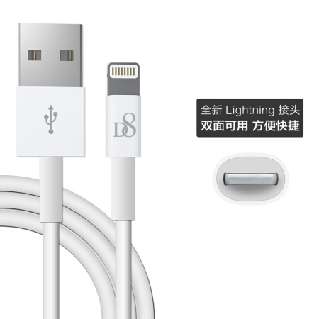 D8 原装数据线头 苹果充电线MFI认证手机线 快充 适用iphone 7/8/X/6s/Plus 1米白色